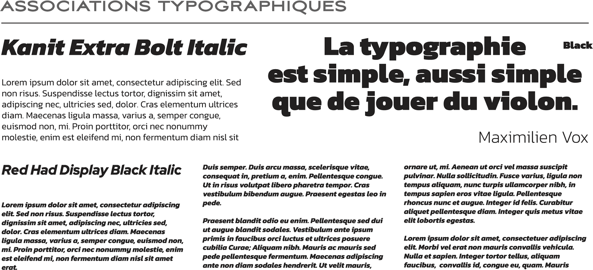La typographie utilisée est ©KANIT, développée par la prestigieuse agence thaïlandaise Cadson Demak®. La fonderie reste spécialisée en conseils typographiques et en conception de polices de caractères, ce qui lui confère un maîtrise affirmée dans la création de polices modernes. De la famille des typographies linéales, Kanit© bénéficie d’une élégance naturelle et d’une certaine force intrinsèque, dans la lignée des typographie thaïlandaises modernes. Son éventail de graisses permet de la décliner efficacement dans des layout à la fois audacieux et léger.