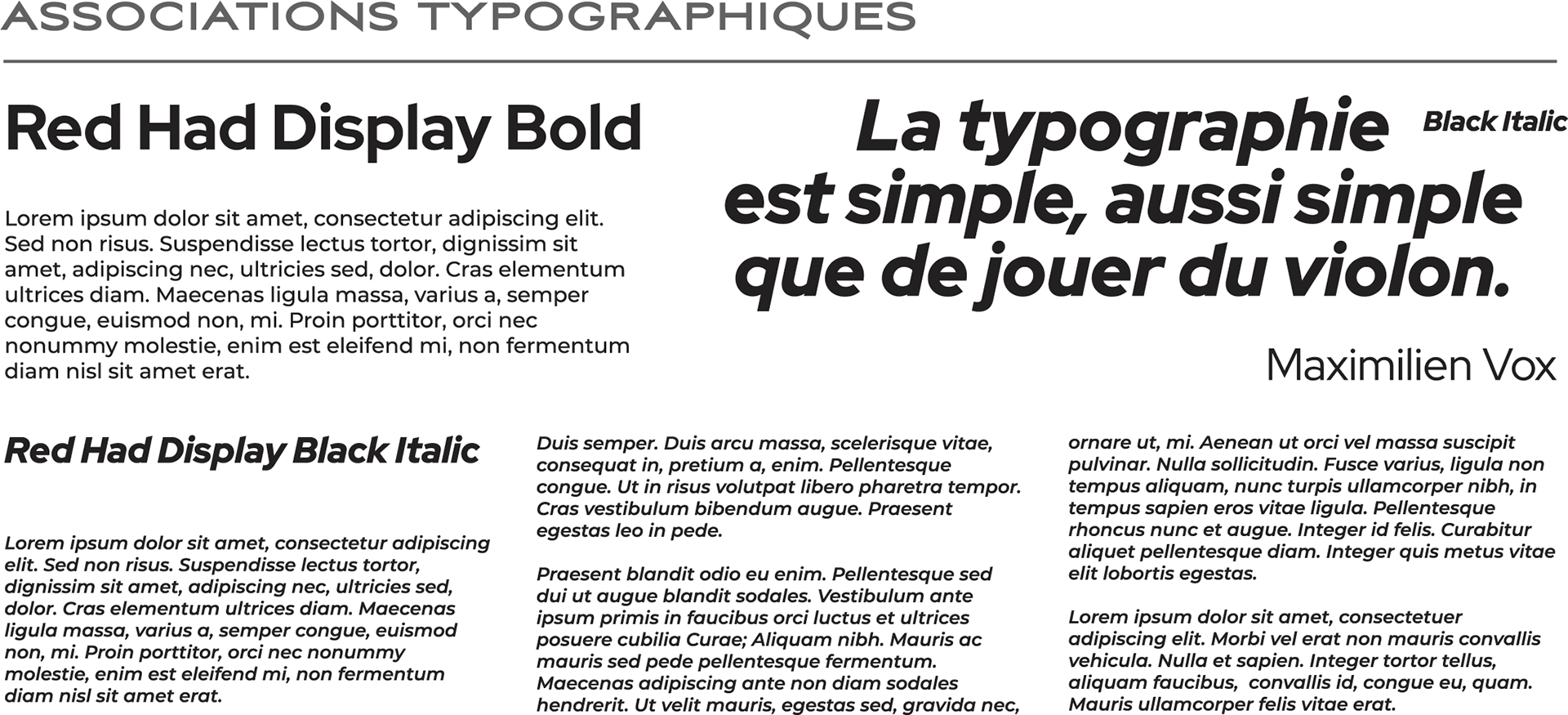 La typographie utilisée est ©RED HAT DISPLAY, développée par Jeremy Mickel. La typographie Red Hat Display, avec ses styles Display et Text complémentaires, s'impose comme un choix optimal pour Optipay. Son faible contraste et ses contre-formes ouvertes assurent une excellente lisibilité des informations financières, tandis que son approche géométrique sans-serif renforce l'identité moderne de la plateforme.